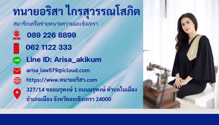 ทนายอริสา ไกรสุวรรณโสภิต มือถือ 032 1122 333