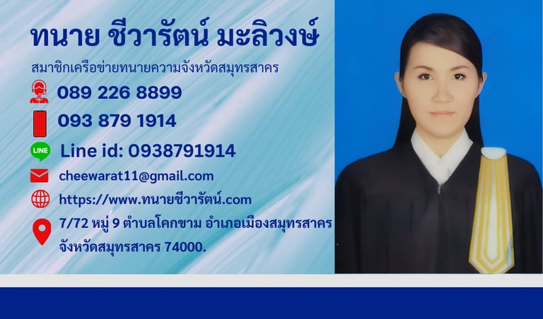 ทนายชีวารัตน์ มะลิวงษ์ มือถือ: 093 879 1914