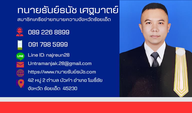 ทนายธันย์ธนัช เศฐมาตย์ มือถือ: 091 798 5999
