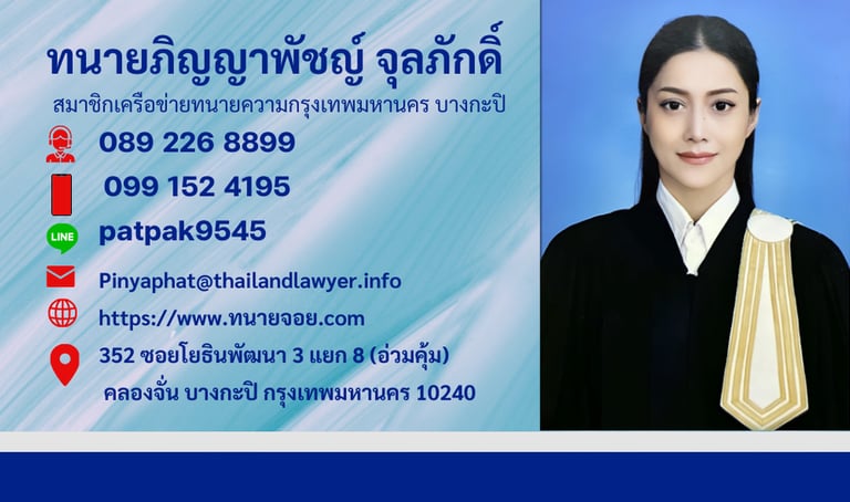 ทนายภิญญาพัชญ์ จุลภักดิ์ มือถือ: 099 152 4195