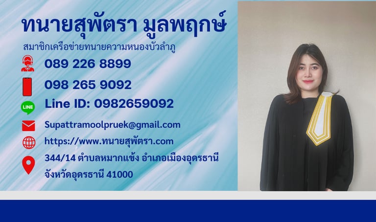 ทนายสุพัตรา มูลพฤกษ์ มือถือ: 098 265 9092